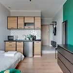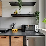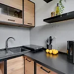 A mini-kitchen with a microwave oven, a fridge, and kitchenware is provided in the property, along with coffee and tea making equipment. The apartment is right near Przystanek koncowy bus station.